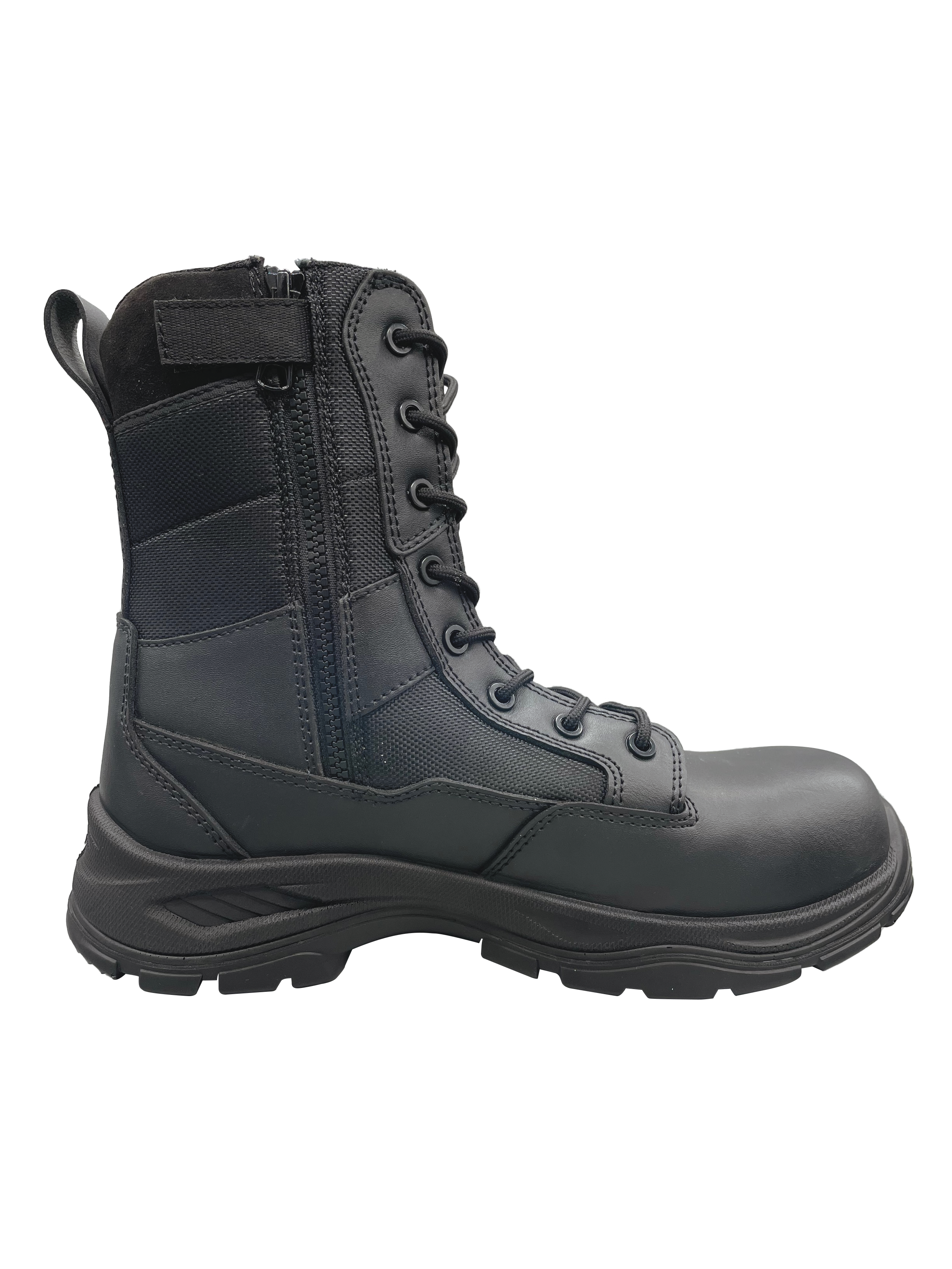 BLACK STAR este un bocanc tip ranger, cu protectie, cu căptușeală din piele și material Oxford. Talpa sa este realizată din PU/PU, ceea ce face ca modelul să fie confortabil. BLACK STAR este echipat cu un bombeu de protectie din compozit și o talpă textilă rezistentă la perforare, pentru ușurință și flexibilitate. Un fermoar lateral mare, îl face ușor de pus și scos