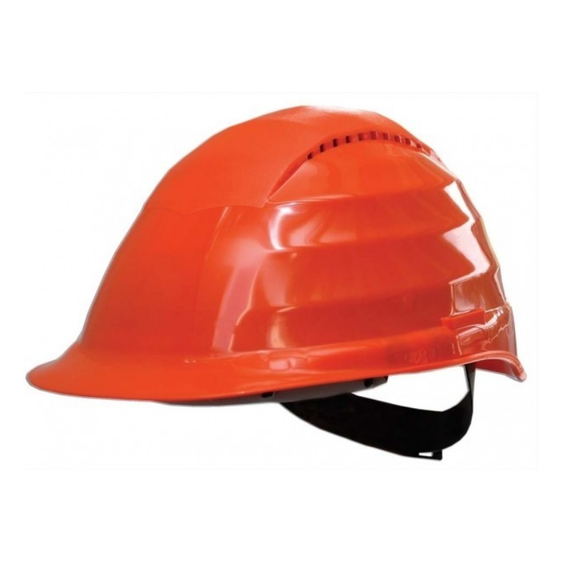 Cască din PE, protecţie sporită pentru ceafă, suspensie din polietilenă (opţional bandă textilă),cu fixare în 6 puncte.