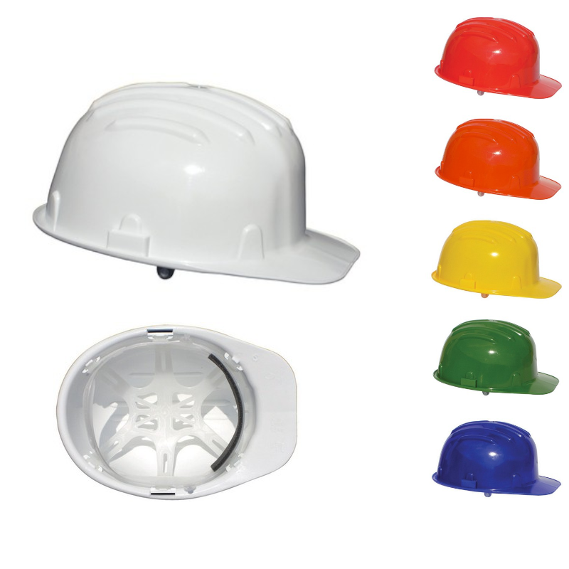 Cască din PE, suspensie din polietilenă cu fixare în 6 puncte, reglaj manual, bandă antitranspiraţie textilă, rezistentă la