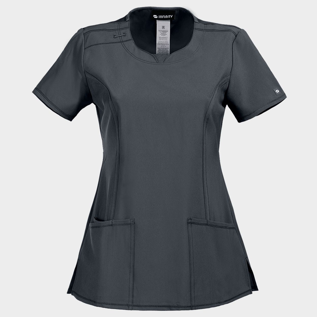 Tunică medicală pentru femei, cu decolteu rotund și tratament antimicrobian, care oferă protecție suplimentară și prospețime pe tot parcursul zilei. Parte din colecția Cherokee Infinity, ce combină designul modern cu funcționalitatea.
