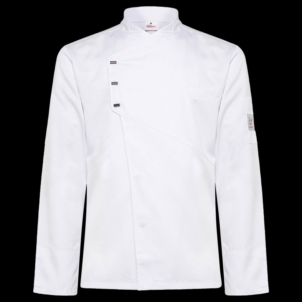 Tunica pentru bucătar cu mâneci lungi, închidere cu nasturi, buzunar superior ascuns la piept și plasă la spate. MATERIAL: 50% lyocell/ 50% poliester, 200 g/m²