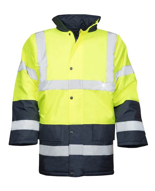 Geaca de iarna impermeabila cu dungi reflectorizante 2 orizontale, 2 verticale pe față și spate, 2 pe mânecă. Jacheta are 3 buzunare, gluga detasabila la guler, fermoare in doua directii acoperite cu placheta, mansete interioare tricotate.