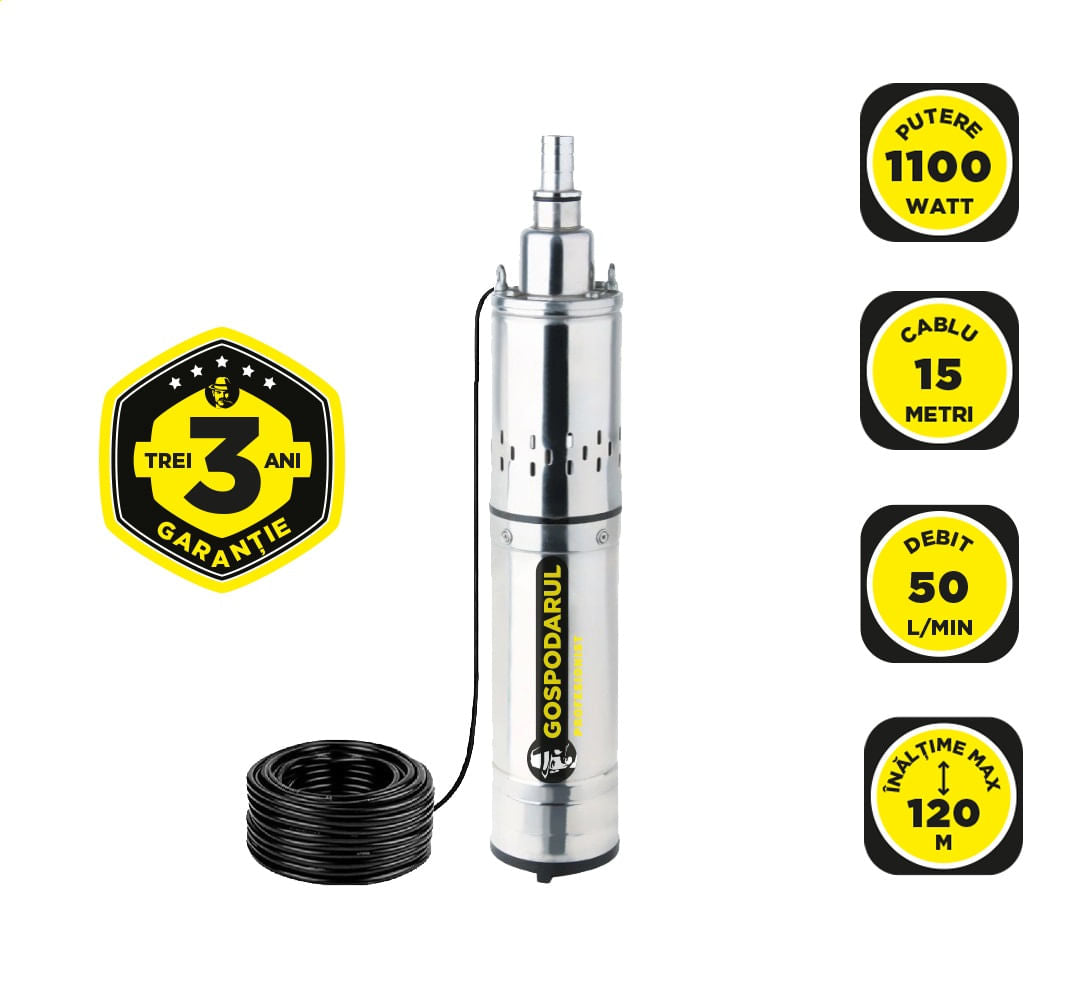 Pompa sumersibila cu motor monofazat, folosita la scara larga in alimentarea cu apa a locuintelor, in irigatii si pentru alimentarea instalatiilor sub presiune din industria alimentara.