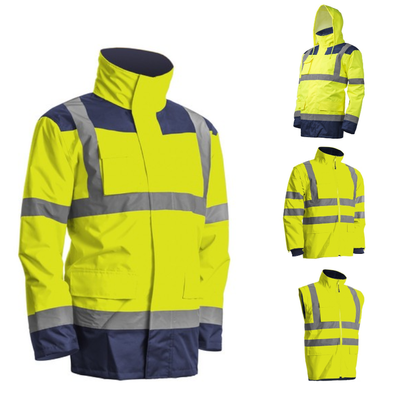 • model 4 în 1 : haina detașabilă cu ajutorul fermoarului, exteriorul din Oxford 300D PES impermeabilizat cu PVC fluorescent, și căptușeala polar de 280 g/m2, respectiv căptușeala călduroasă din tafta poliesterică din mâneci; prin detașarea mânecilor se poate transforma în vestă, manșete tricotate, 3 buzunare cu capac