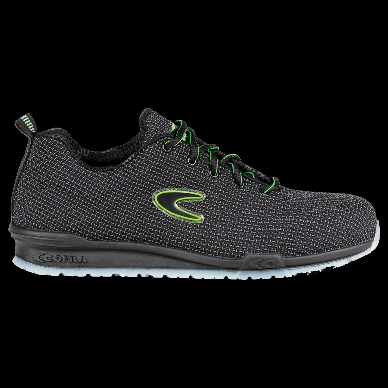 PARTEA SUPERIOARĂ: fără cusături TECHSHELL - textil inovator foarte rezistent la uzură, hidrofug și respirabil CĂPTUȘEALĂ: SANY-DRY® 100% poliester-tridimensional, respirabil, antibacterian, asigură niveluri excepționale de absorbție a umidității, rezistență la abraziune. BRANȚ: COFRA SOFT - fabricat din poliuretan parfumat, perforat, antistatic, moale și confortabil, forma părții inferioare asigură absorbția energiei în călcâie și aderență ridicată, partea superioară absoarbe umezeala și menține talpă uscată. TALPĂ: PU / TPU BOMBEU: NU LĂȚIME: 11 PLACĂ: NU