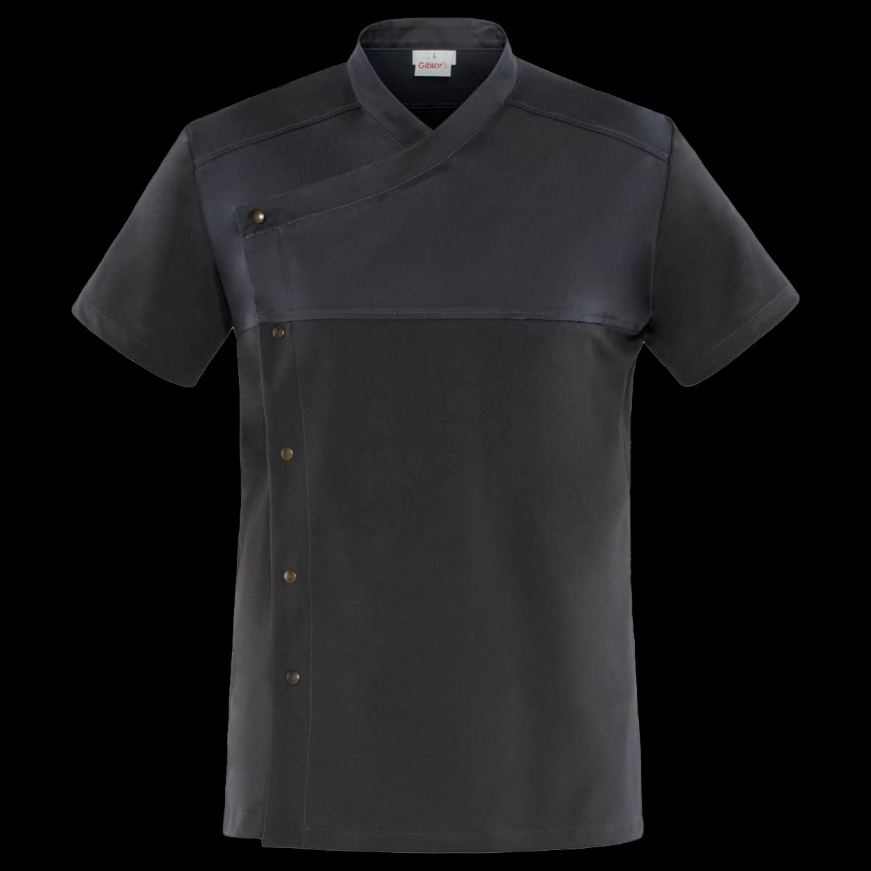 Tunica pentru bucătari. Închidere cu nasturi, buzunar superior ascuns la piept, plasă pe spate. MATERIAL: două tipuri de țesătură - 100% poliester, 150 g/m² + 98% bumbac, 2% elastan, 200 g/m²