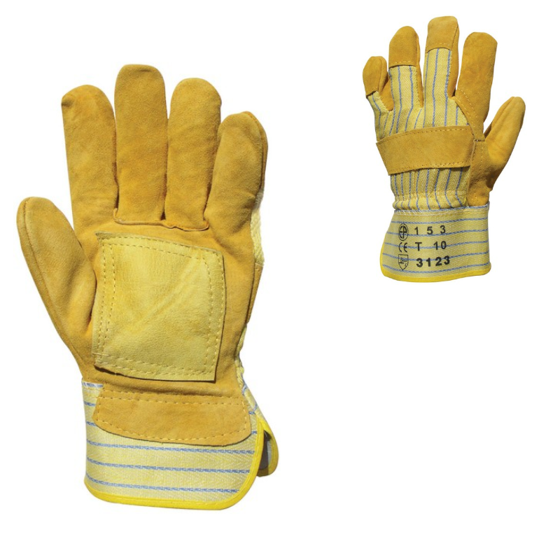 Manusi de protectie BACMAS piele şpalt cu întăritură palmă, dos textil şi manşetă întărită.