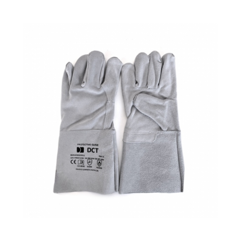 Manusi de sudura cu 5 degete. Palma si degetul mare din piele box bovina, fata si manseta din spalt bovine. Lungime totala 35 cm.