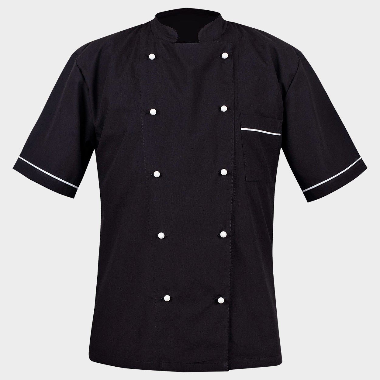 Tunica pentru bucătar, cu mâneci scurte, buzunar la piept și nasturi detașabili. MATERIAL: bumbac/poliester, 120 g/m²