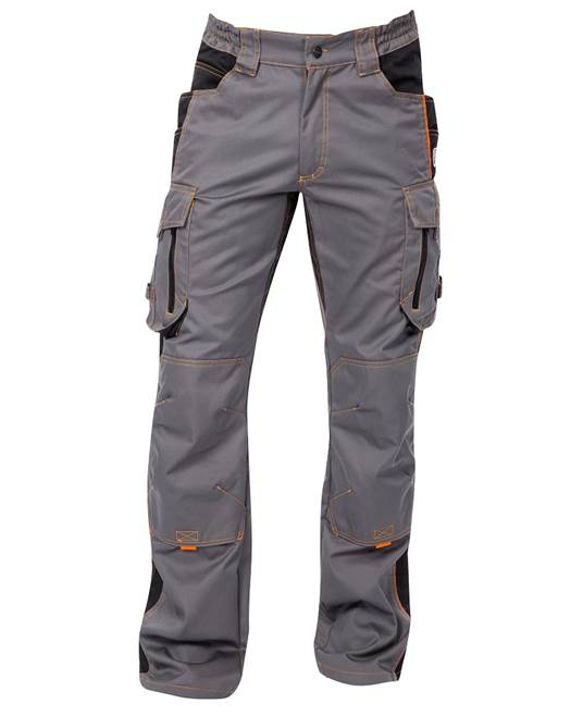 Producătorul nu a neglijat siguranța lucrătorului, motiv pentru care pantalonii sunt cusuți cu fir contrastant și completați cu imprimeuri reflectorizante argintii originale.