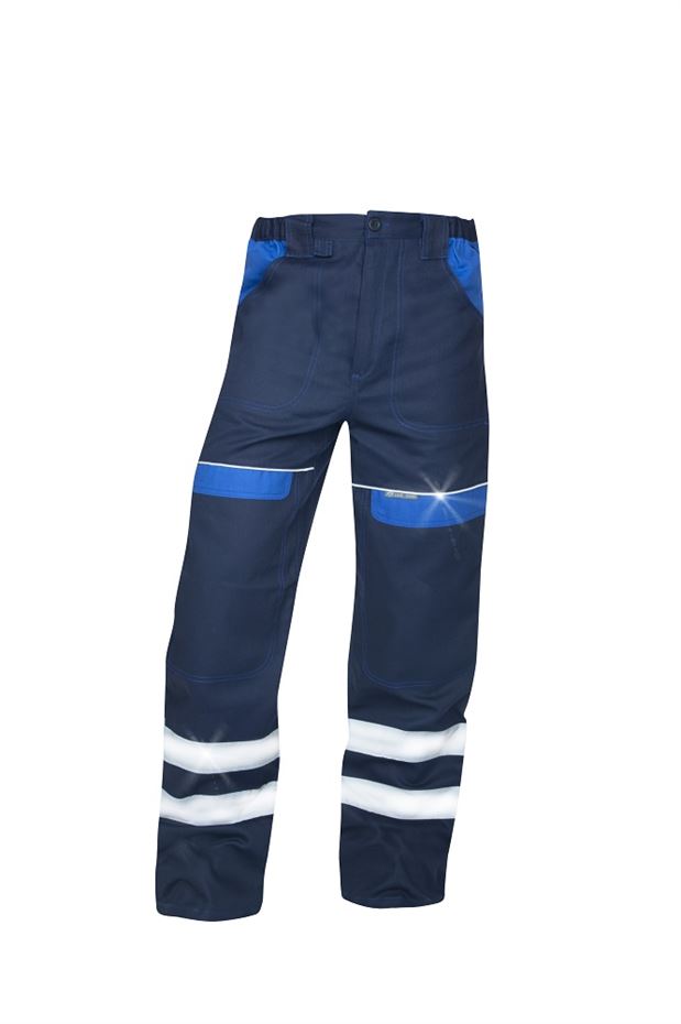 sunt pantaloni de lucru cu dungi reflectorizante, 2 buzunare frontale, elastic in talie şi la spate şi 2 buzunare, buzunare laterale pentru scule. Secțiunile de genunchi sunt întărite. Pantalonii au 2 elemente reflectorizante pentru o vizibilitate mai mare, inclusiv centura.