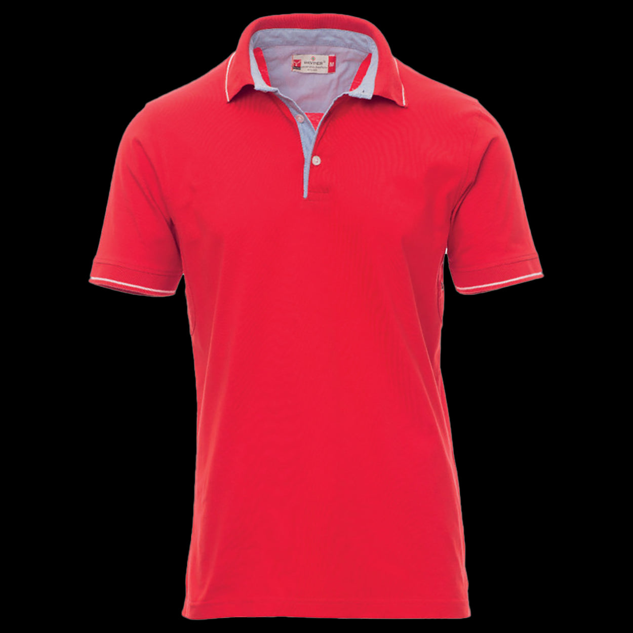 Tricou polo pentru bărbați cu mânecă scurtă, cu 3 nasturi albi, partea interioară a gulerului, banda și micile fante laterale din oxford bleu, guler și margine mânecă elastice cu profil contrastant, ochiuri sub braț, mici fante laterale cu cusături întărite, bandă de întăritură laterală, cusături stretch, întăritură modelată în partea din spate a gulerului. Compoziție: 100% BUMBAC Aspect: JERSEU Greutate: 175 GR/MQ