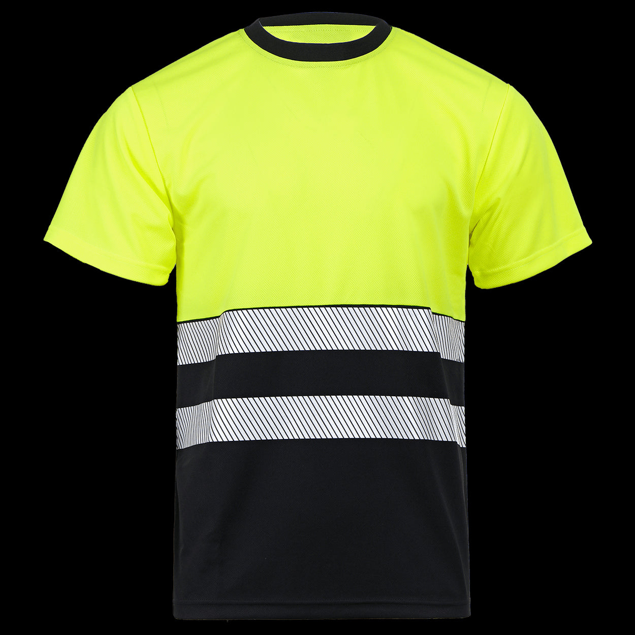 Tricou reflectorizant in doua culori cu benzi reflectorizante imprimate si decolteu rotund.