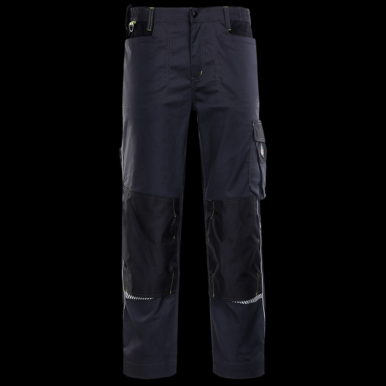 Pantaloni de lucru din material elastic, cu buzunare functionale, genunchi intariti si elemente de contrast.