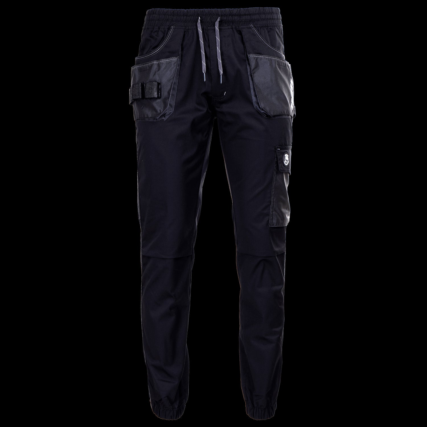• pantaloni de lucru cu aspect sportiv și croi mulat; • talie elastică, șireturi și fermoar pentru confort maxim; • două buzunare frontale voluminoase și buzunare suplimentare pe ele; • un buzunar cu clapeta pe coapsa stângă; • buzunar pentru scule pe coapsa dreaptă; • două buzunare la spate - cel drept cu clapeta, • prindere elastică în glezne; • element reflectorizant pe buzunarul din stânga din față. MATERIAL: 32% bumbac, 65% poliester, 3% spandex, 240 g/m²