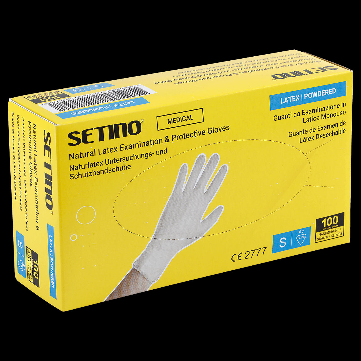 Manusi de unica folosinta nesterile din latex natural cu pudra. CE categoria III (riscuri complexe); CE Clasa I.
