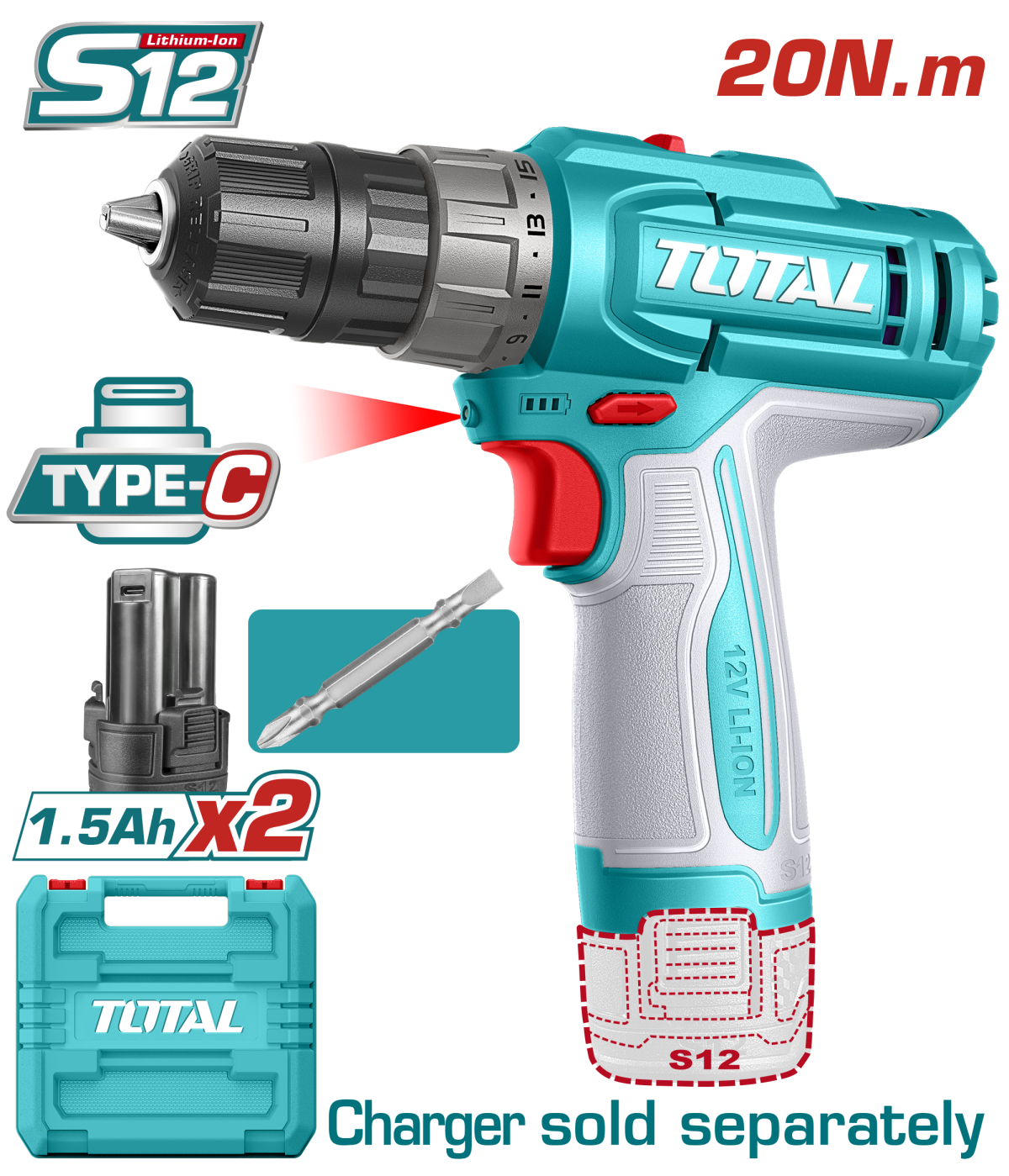 Masina de gaurit TOTAL 12V este o unealta compacta si usor de folosit, ideala pentru lucrari casnice, montaj mobilier sau reparatii usoare. Functioneaza pe acumulator, ceea ce o face practica in zone fara priza, iar LED-ul integrat asigura vizibilitate chiar si in spatii slab luminate. Pachetul include 2 acumulatori de 1.5Ah pentru autonomie extinsa si este livrat intr-o cutie de transport rezistenta.